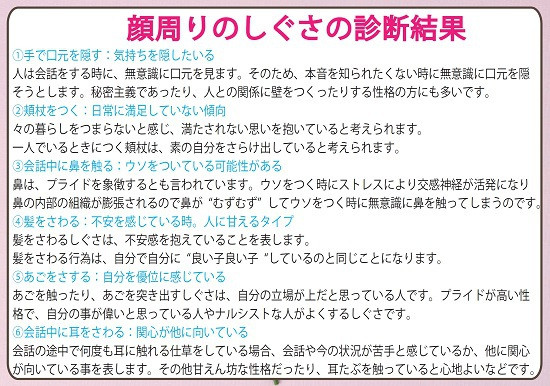 心理テストVol.21(しぐさ心理学編②) 顔周りのしぐさ