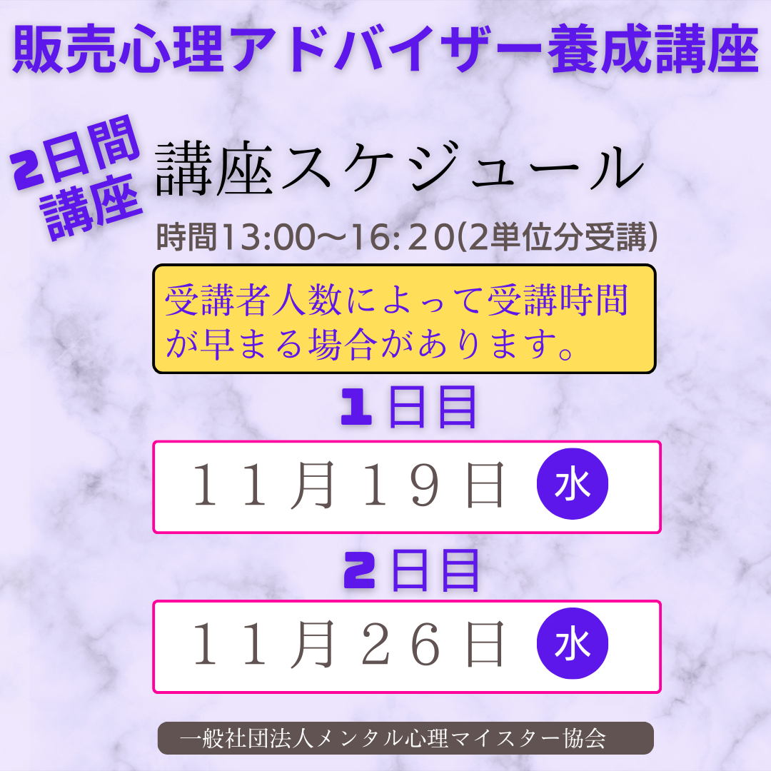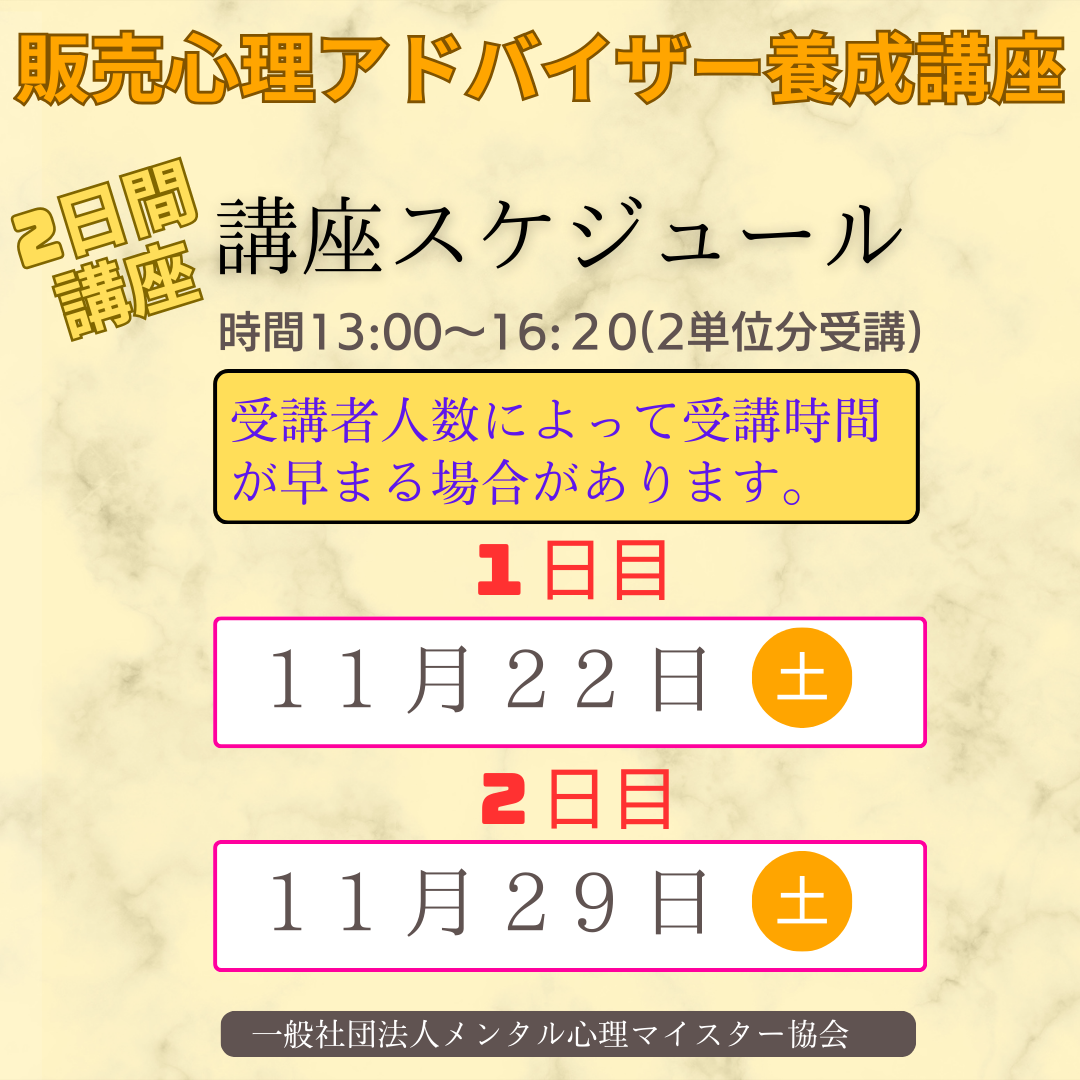 3級心理カウンセラー認定(日曜日)