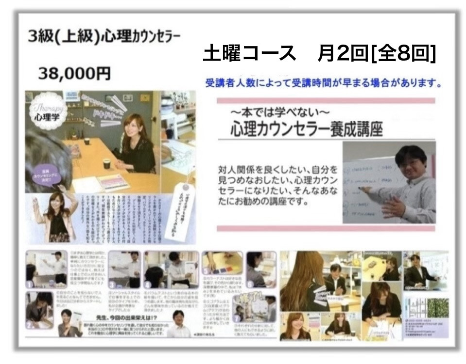 3級(上級)心理カウンセラー4ヶ月講座(土曜日)